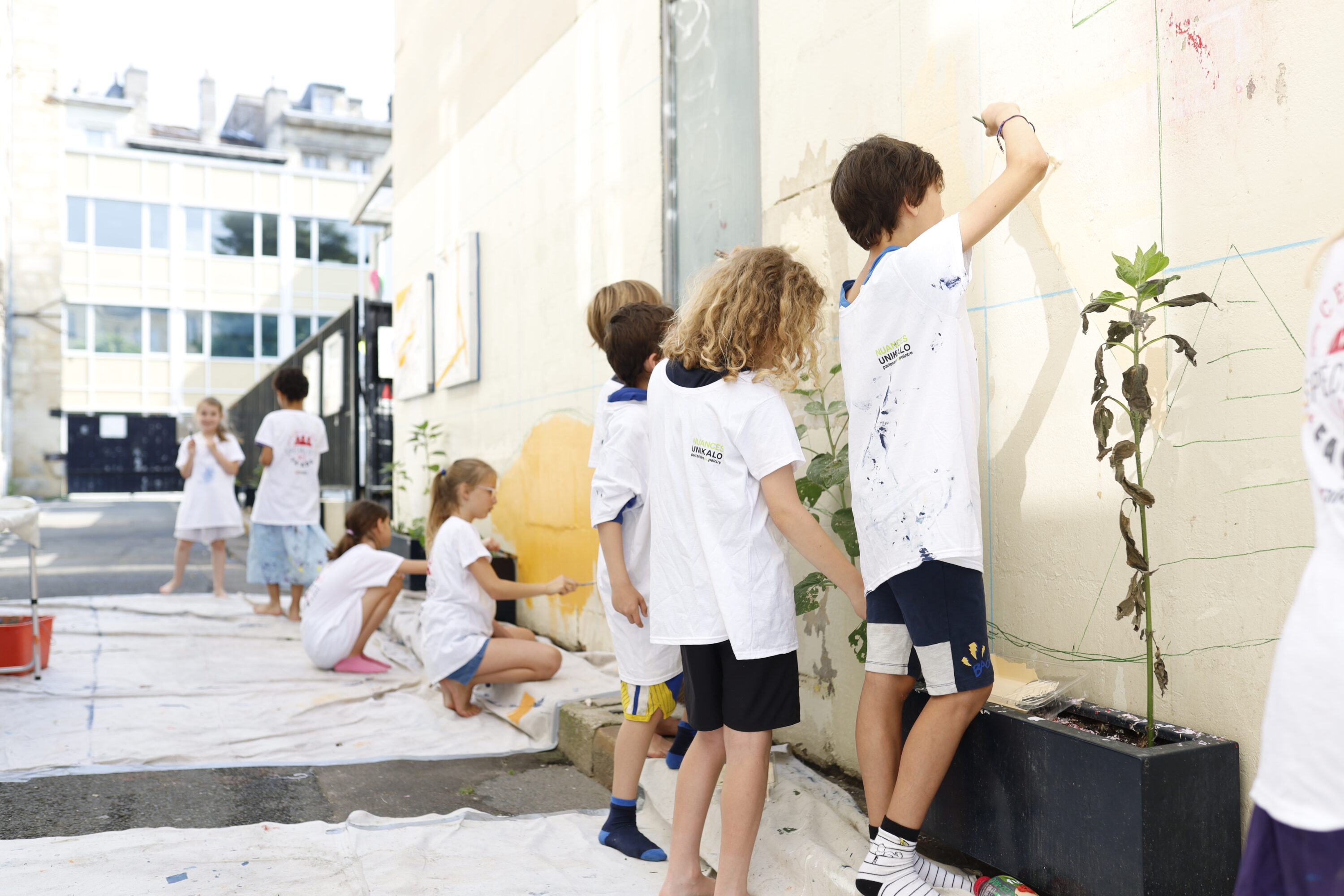 Depuis 2022, l’école du vieux Bordeaux (centre-ville) et ses élèves partagent l’année scolaire avec un.e artiste, élu.e à l’unanimité (par les élèves, les acteurs.rices de l’école et les parents), dans le cadre d’un marrainnage avec un établissement scolaire, initié par la ville de Bordeaux dans sa démarche 100% EAC (Éducation Artistique et Culturelle). Après une première édition avec l’artiste Carni Bird, le projet se poursuit sur l’année scolaire 2023-2024 avec Camille Beauplan. Dans la même logique qu’initiée l’année précédente, les élèves ont participé tout au long de l’année à des rencontres, à des ateliers et à l’élaboration de fresques racontant une histoire imaginée par les élèves.