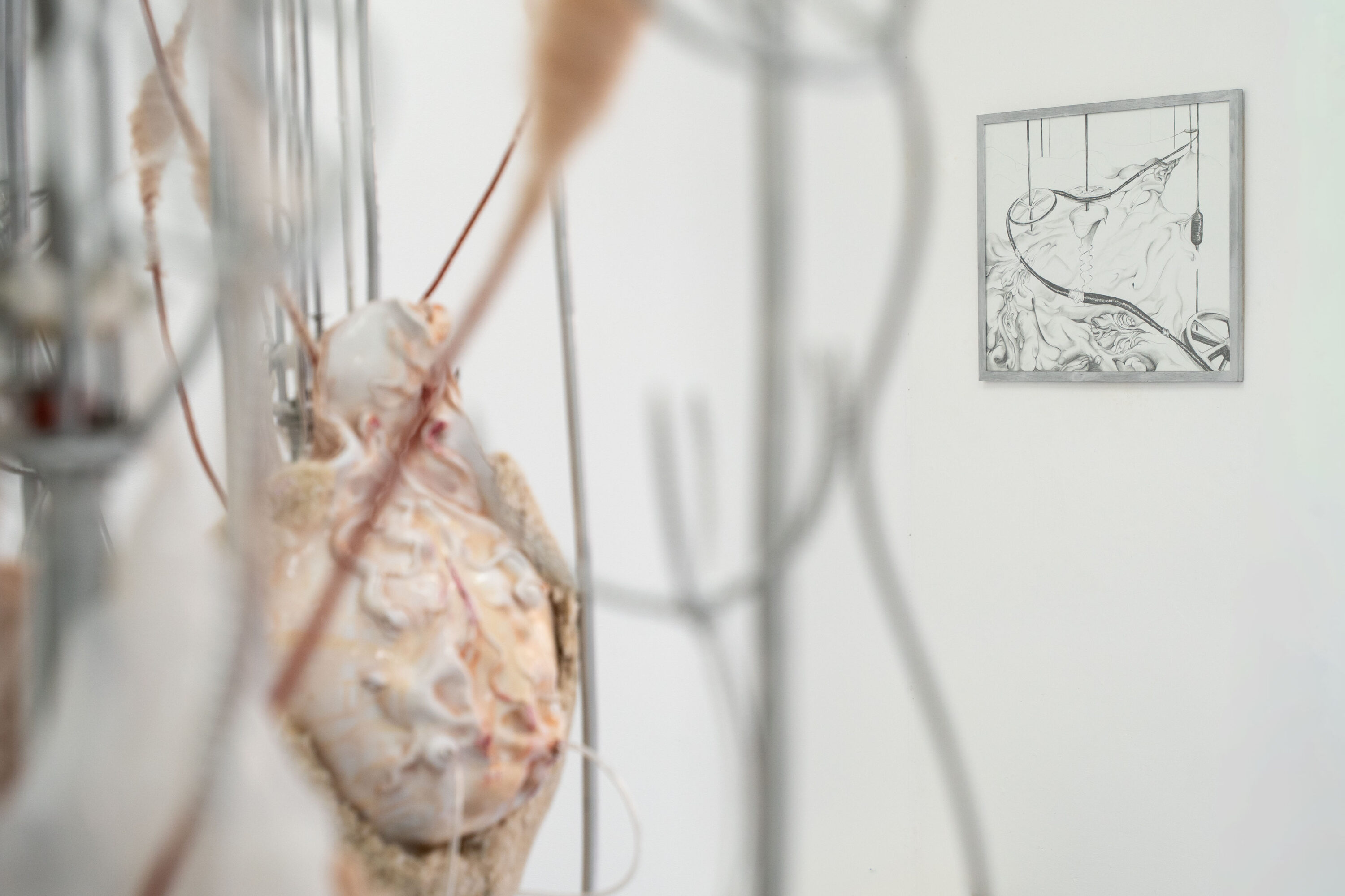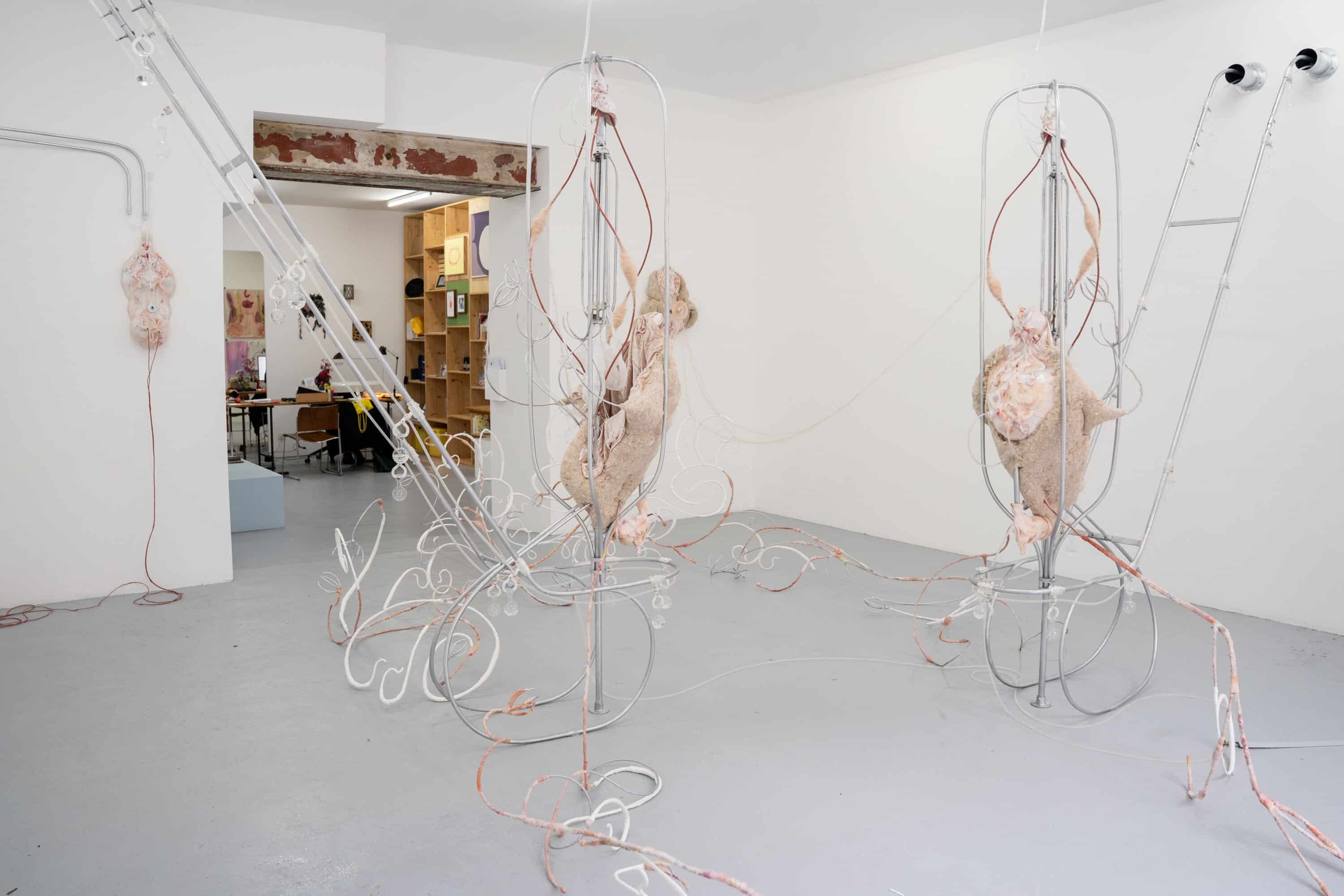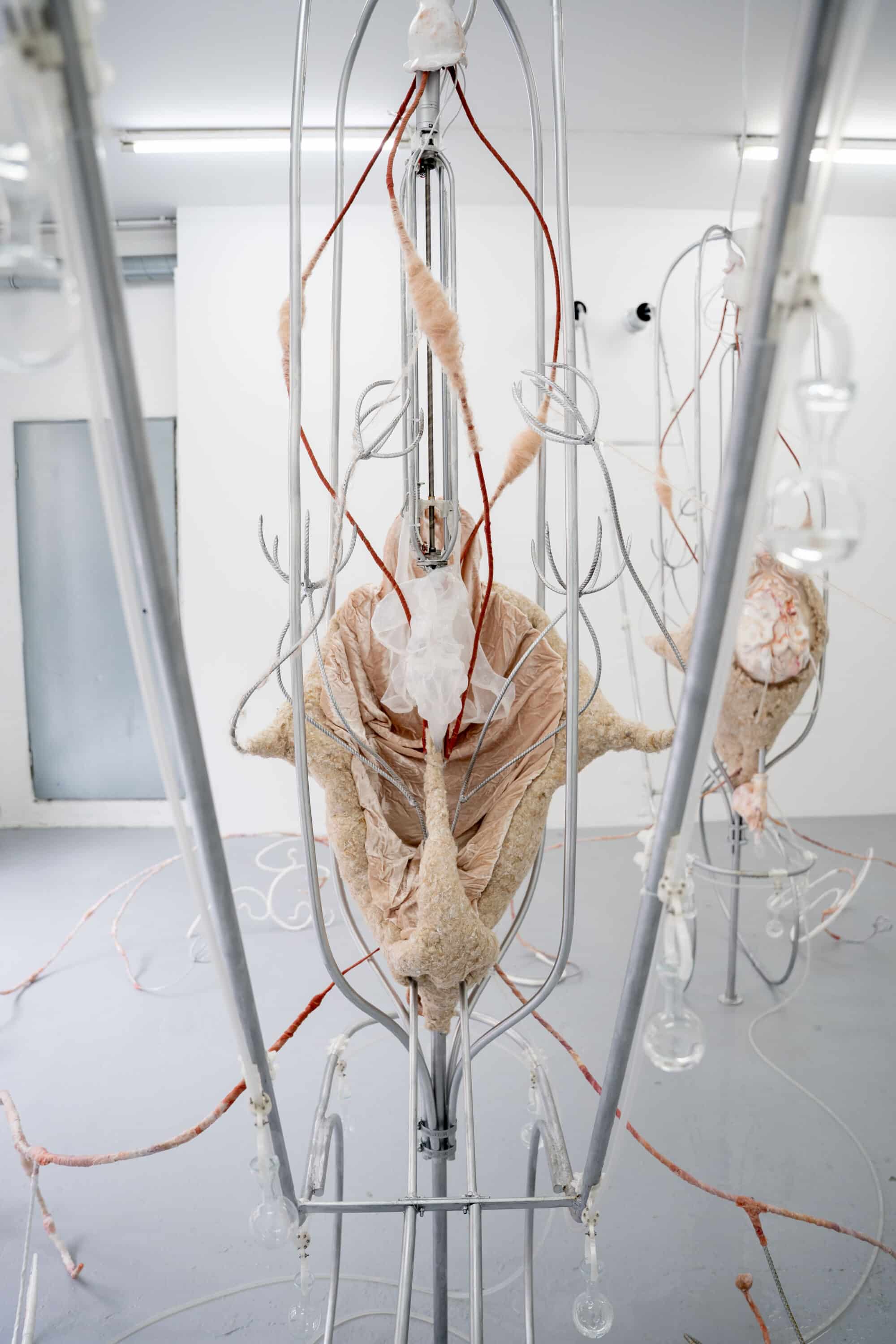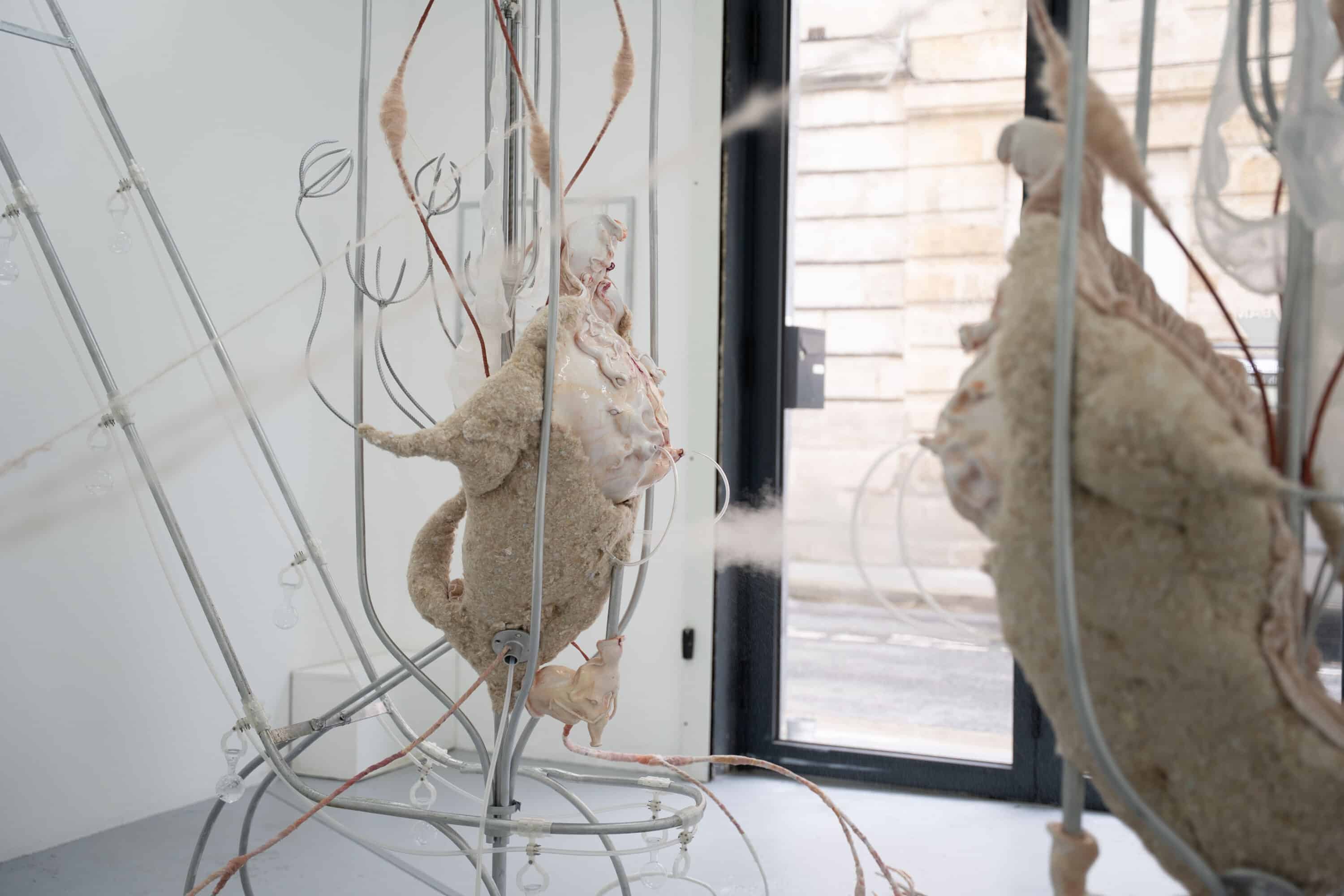 Jusqu’au 24 janvier 2026, BAM projects présente le travail d‘Anaïs Gauthier, pour sa première exposition à Bordeaux. Interférences est une installation in situ, réalisée avec le soutien technique de Matthieu Grivelet, ingénieur, composée de corps hybrides, qui soufflent, qui râlent, qui suintent.
