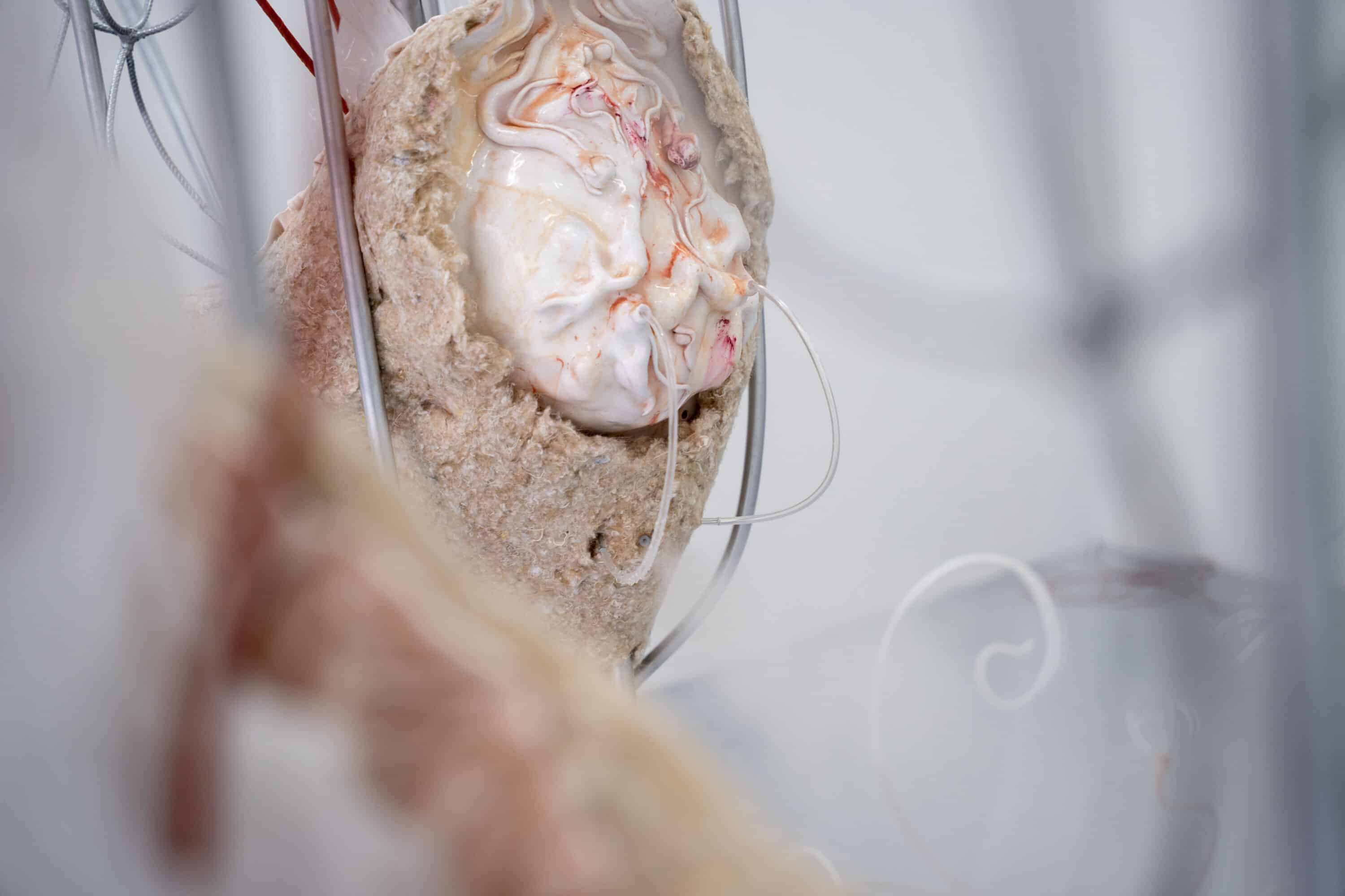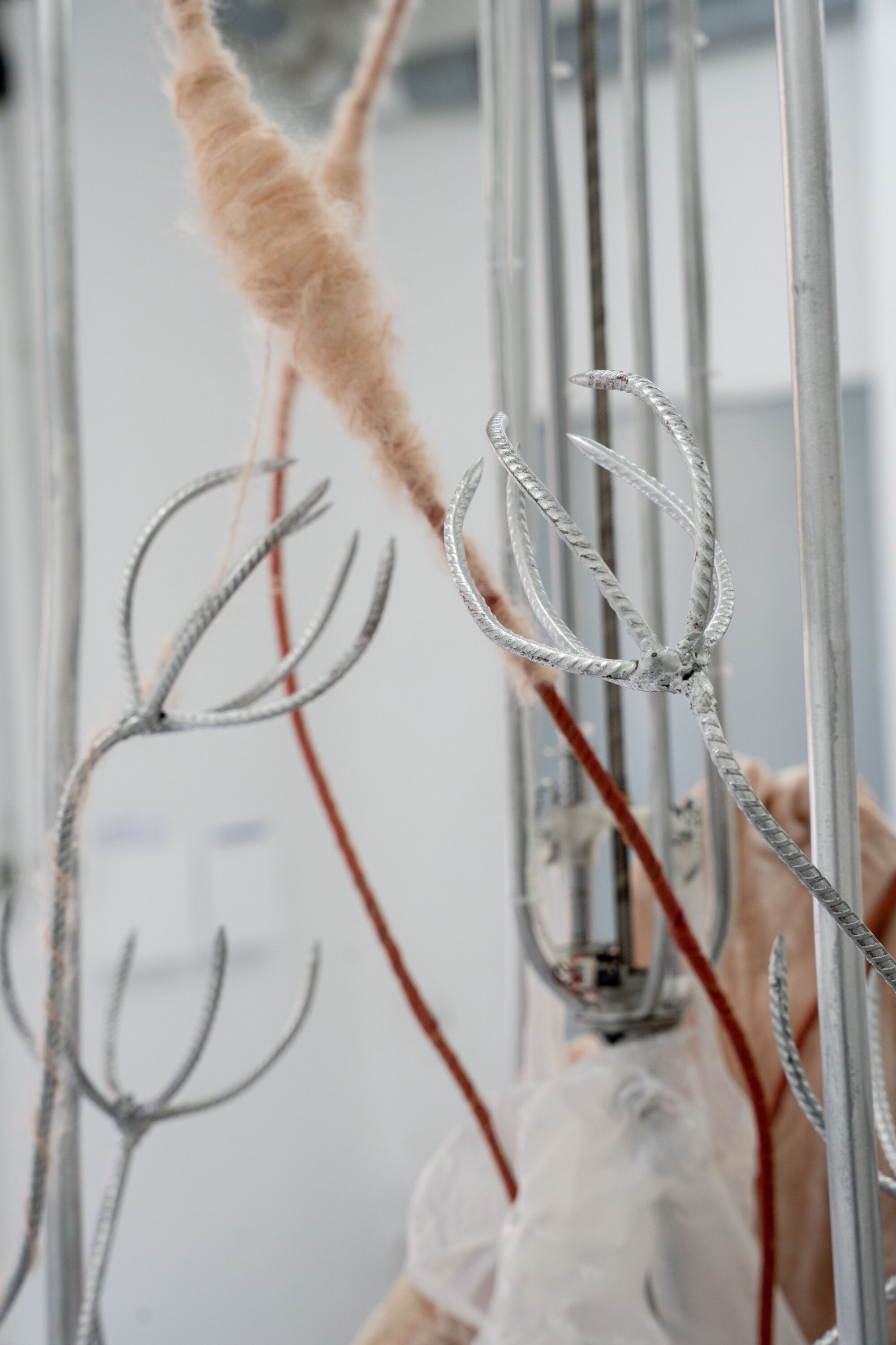 Anaïs Gauthier déploie des installations et sculptures à l’empreinte organique, mêlant art et science, où le son, les souffles et les micro-mouvements font affleurer des paysages sensibles, entre corps et industrie. Ses installations expriment l’épuisement lié à des injonctions de productivité, questionne la mécanisation de nos corps et invite à explorer les frictions du vivant et de la matière, dans des dispositifs qui amènent les visiteur·euse·s à une expérience à la fois physique et attentive.