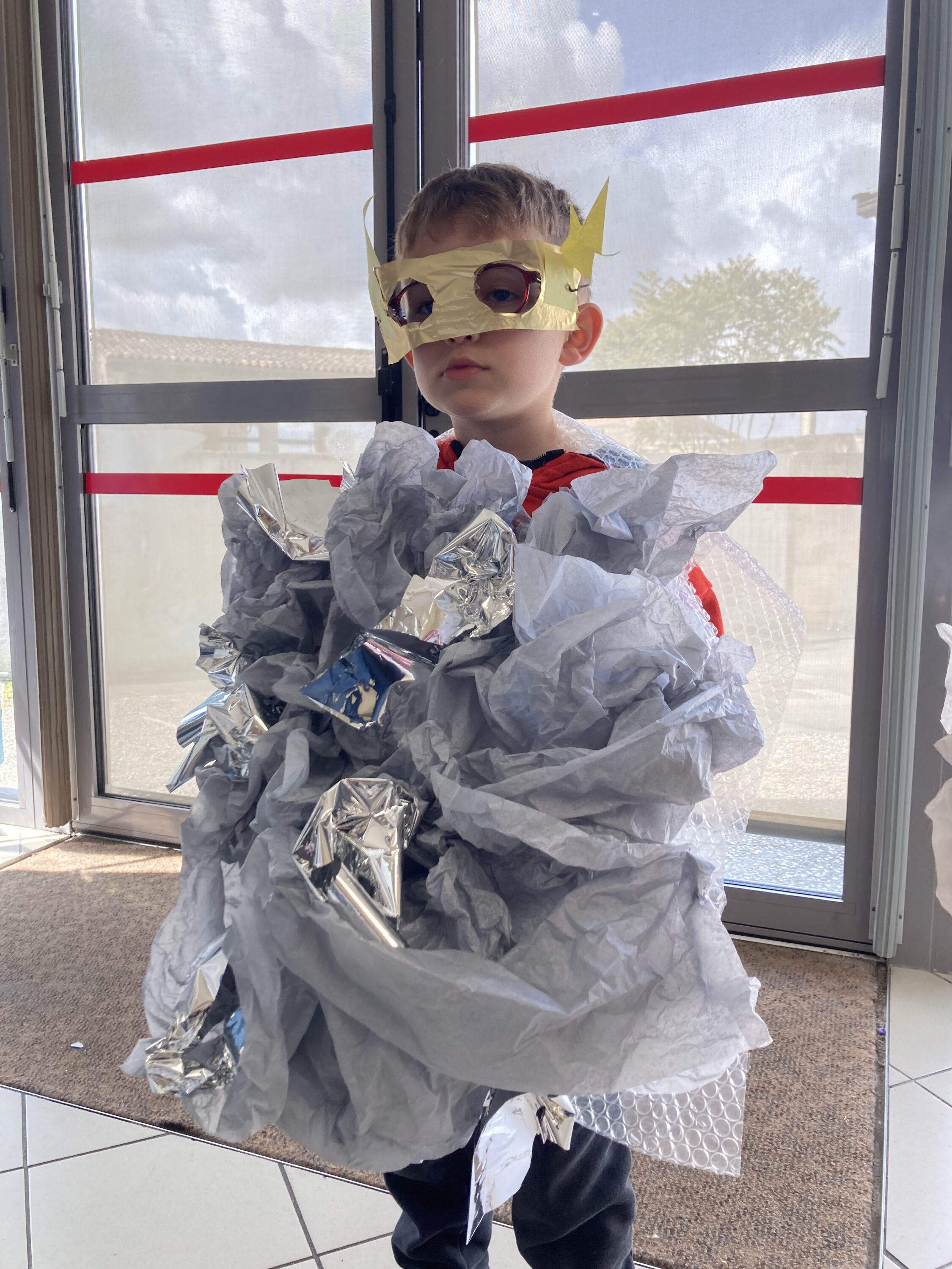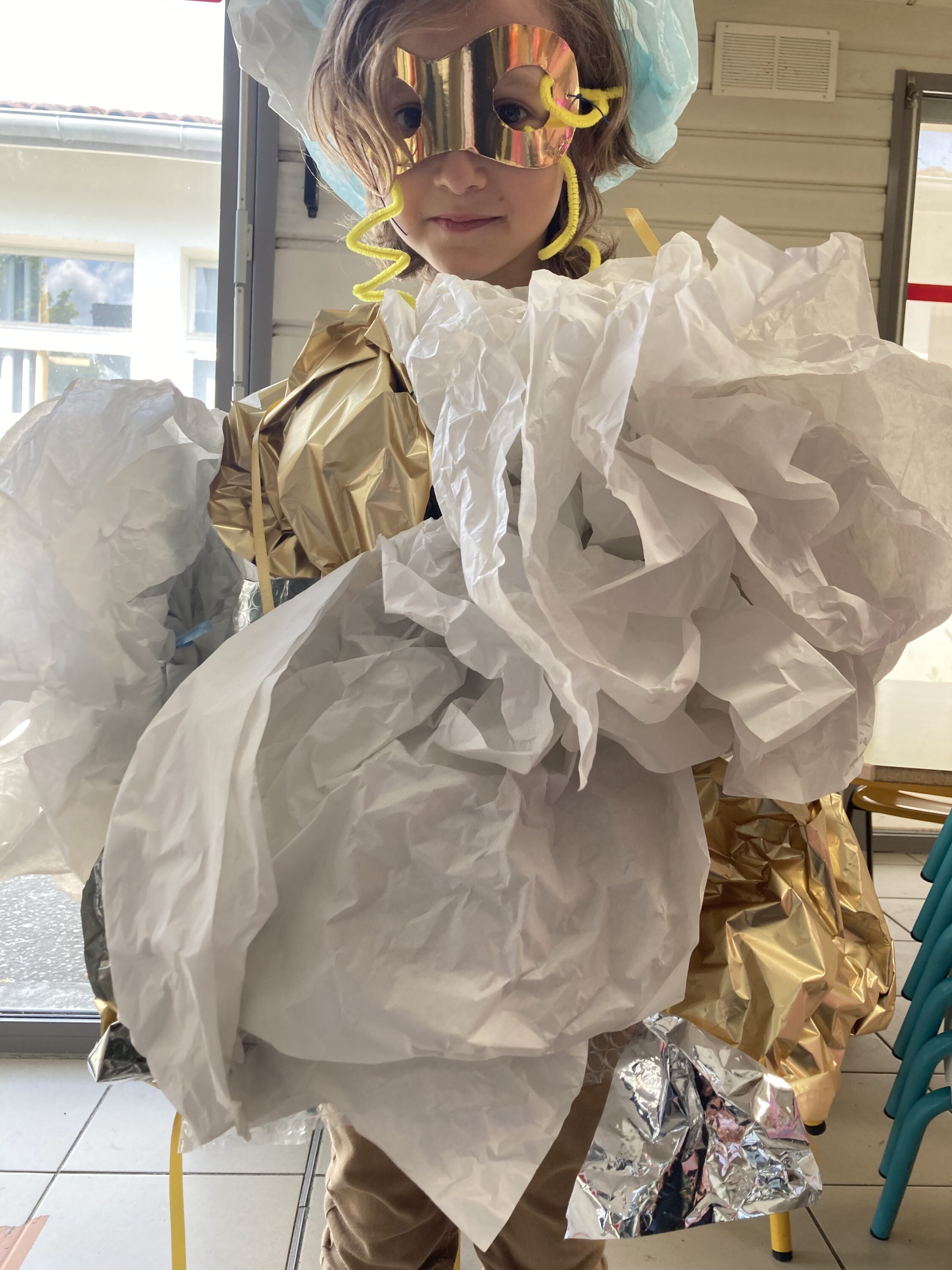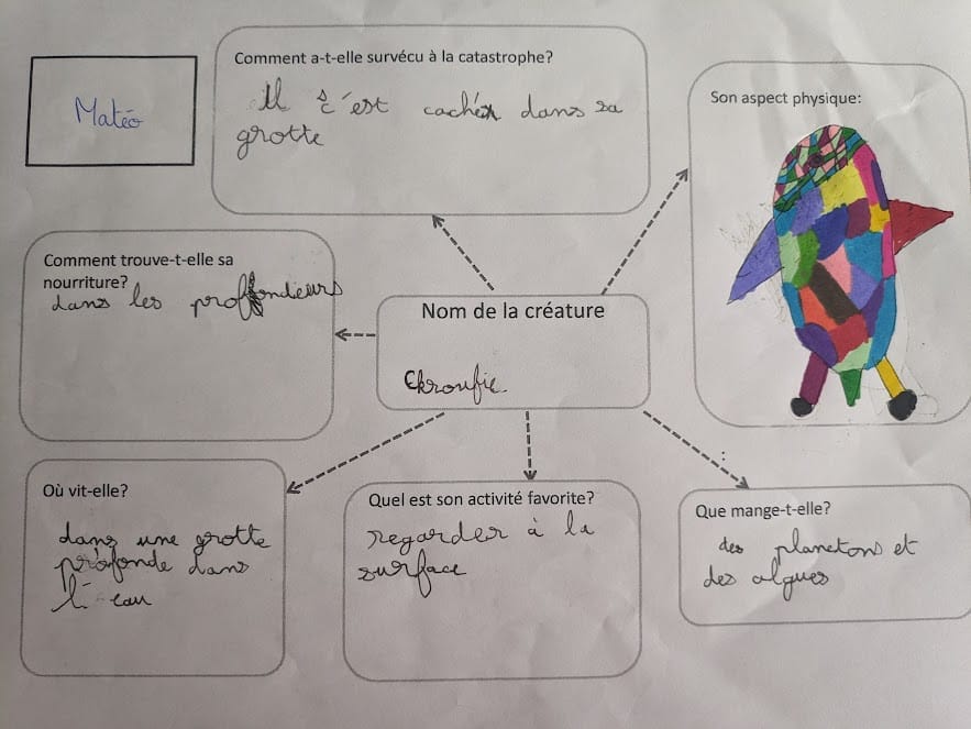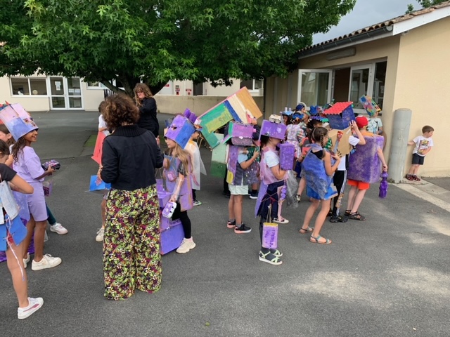 Carte postale et défilé conté des créatures dans la cours de récré.