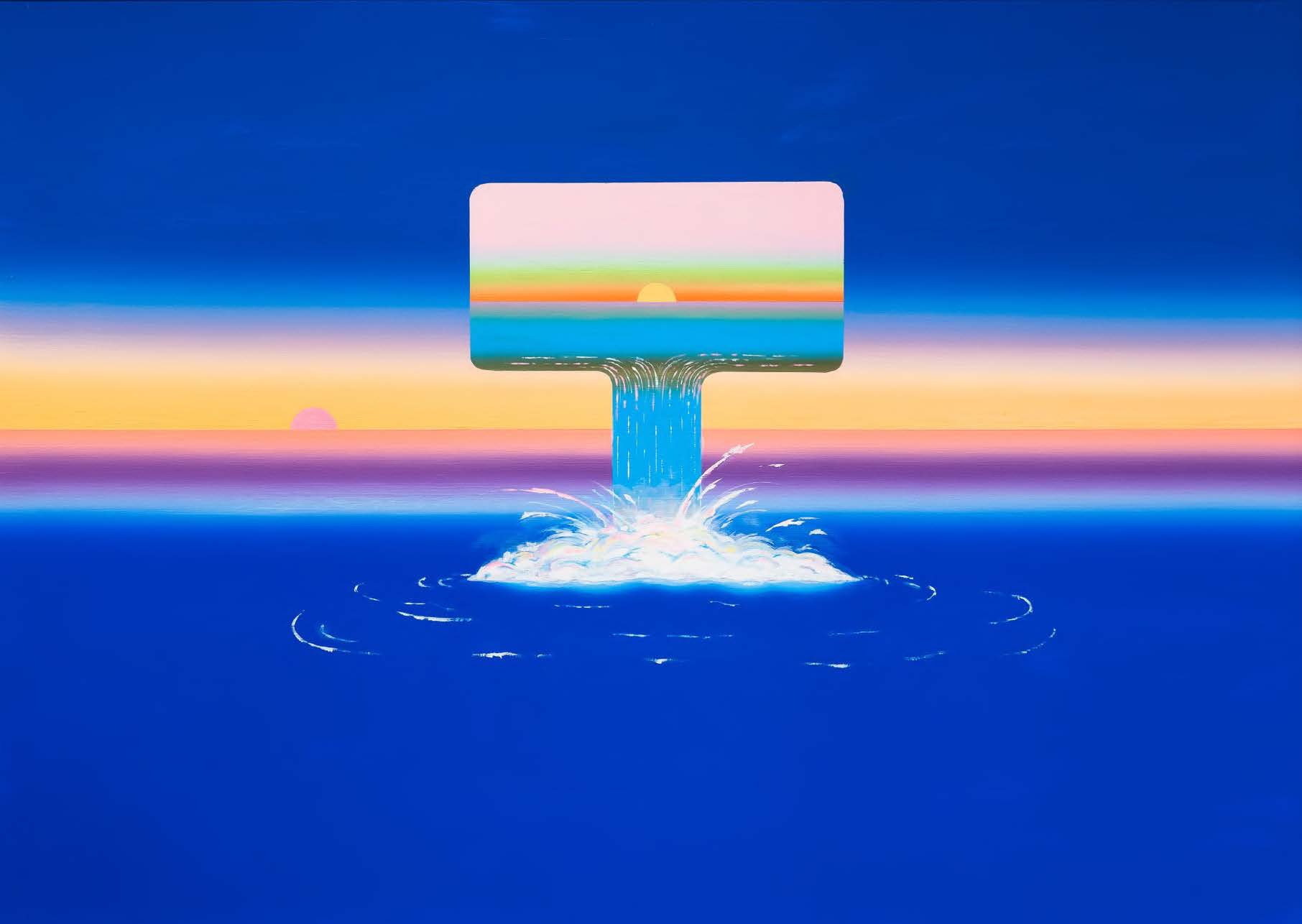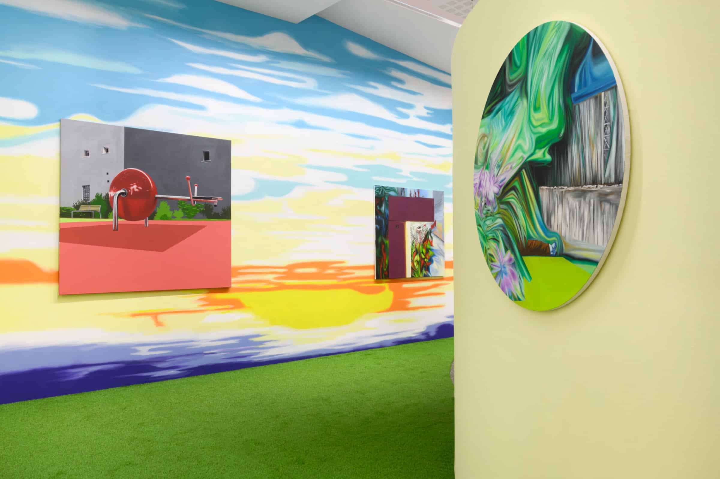 Benjamin Artola déploie un langage visuel constant, structuré autour de motifs simples posés sur des horizons aux couleurs vives, dont la répétition tisse une trame poétique faite de mirages, de réminiscences et d’invitations à la contemplation.