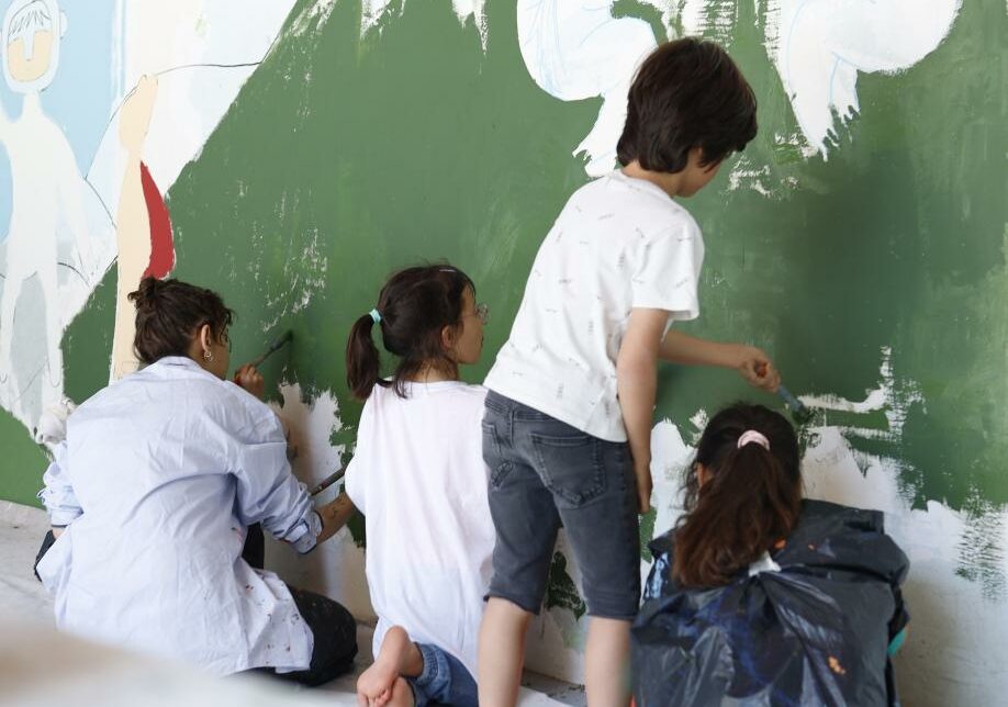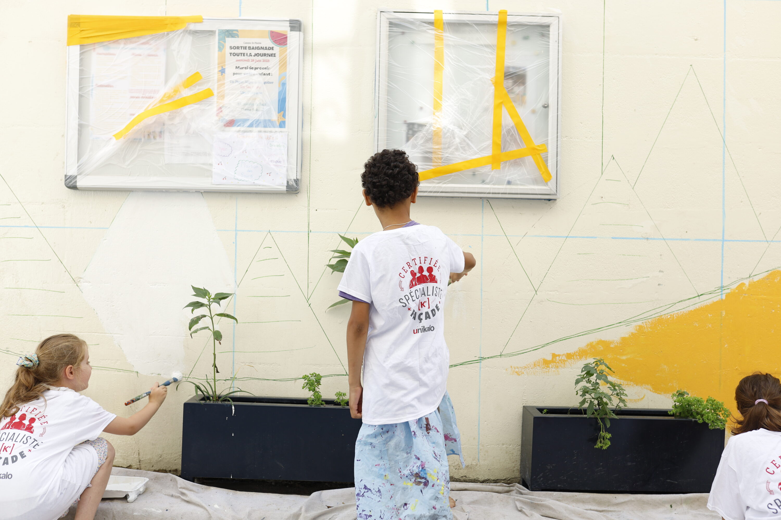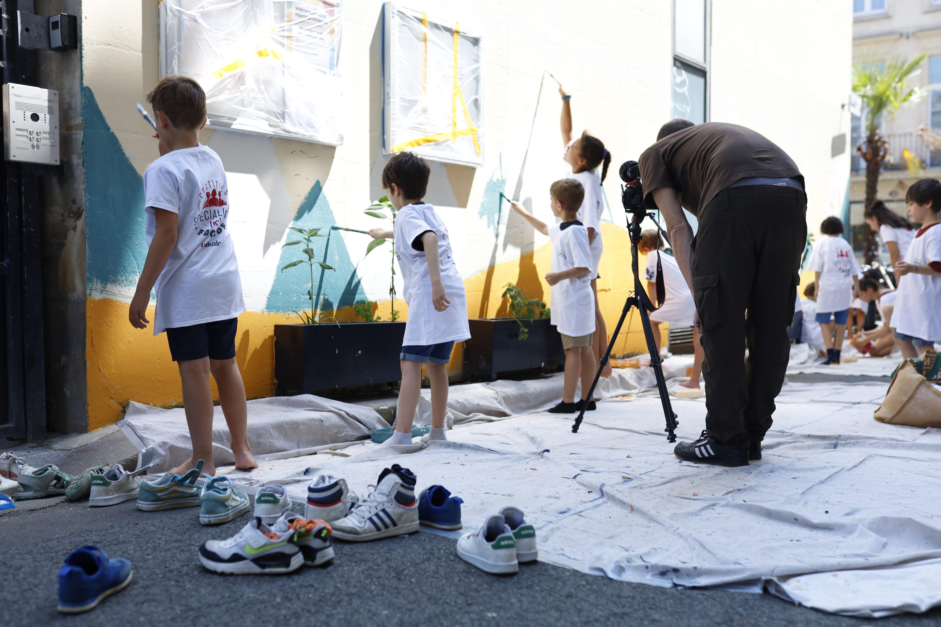 Depuis 2022, BAM projects mène un marrainage avec l’école du Vieux Bordeaux, dans le cadre de la démarche 100% EAC (Éducation Artistique et Culturelle) de la Ville de Bordeaux. Ce partenariat au long cours donne une place centrale aux élèves : ce sont elles·eux qui imaginent, discutent et choisissent les orientations artistiques qui transforment progressivement les murs de leur école.